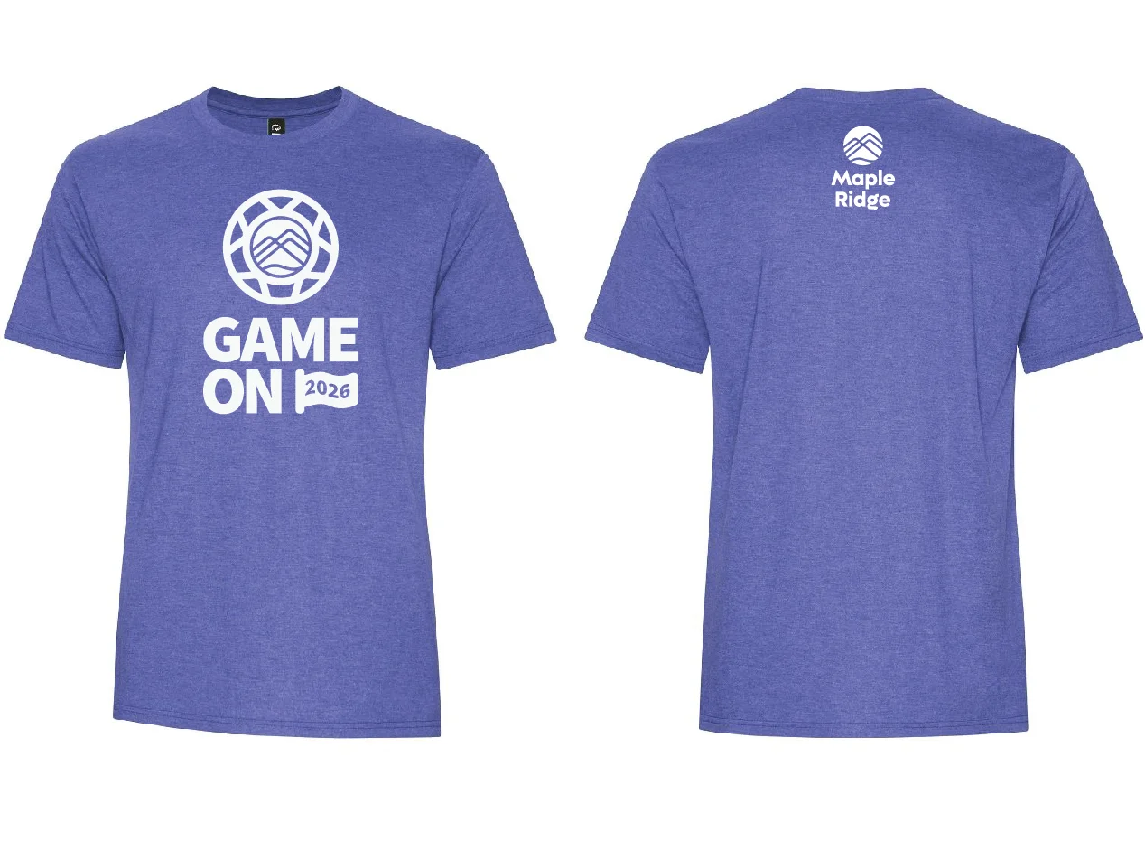The price includes the Game On design on the front of the shirt and the City of Maple Ridge logo on the back.